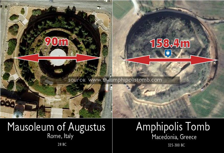 Σύγκριση μεγέθους του Τάφου στην Αμφίπολη με το Μαυσωλείο του Αυγούστου (Ρώμη, Ιταλία)