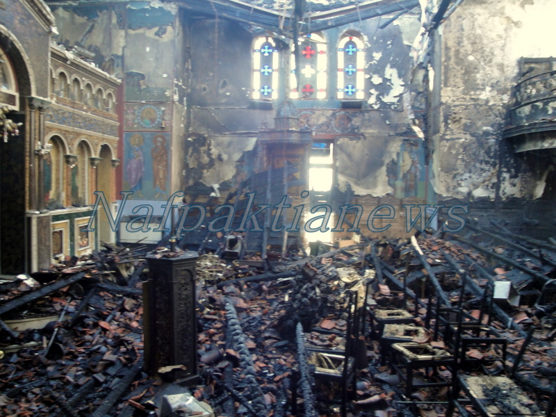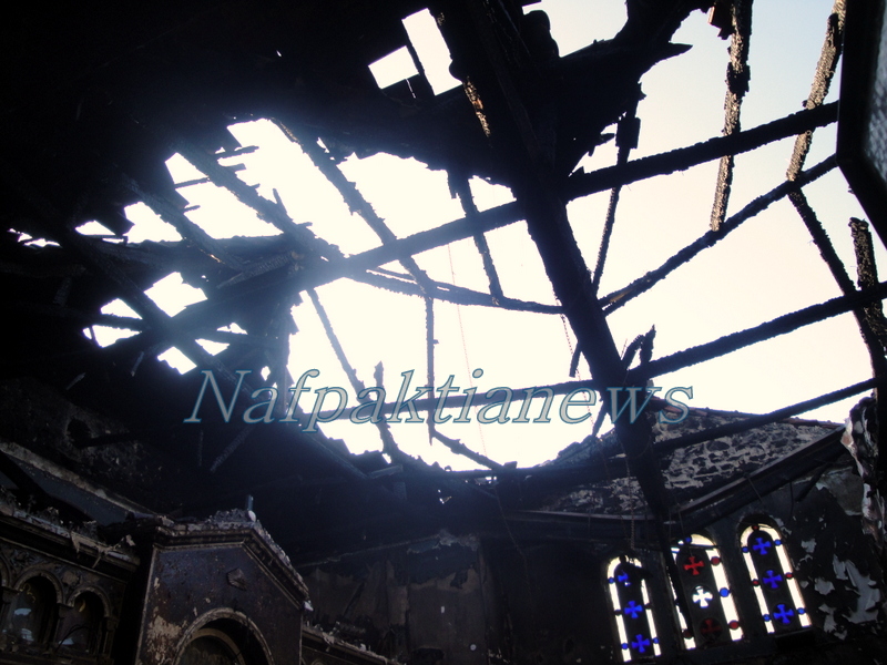 Δυστυχώς όμως, το πρώτο φως της ημέρας αποκάλυψε το μέγεθος της καταστροφής, όπως φαίνεται από το φωτορεπορτάζ που εξασφάλισε το nafpaktianews.gr. Πέρα από τους τοίχους και το τέμπλο τίποτε άλλο δεν έμεινε όρθιο από την καταστροφική μανία της πυρκαγιάς.