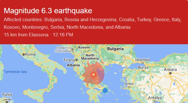 Σεισμός αισθητός στην Αττική. Το επίκεντρο ήταν στη Θεσσαλία. Λάρισα, Τρίκαλα ταρακουνήθηκαν επειδή ο σεισμός ήταν επιφανειακός. Κουνήθηκε και η Θεσσαλονίκη.
