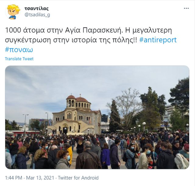 Η κεντρική φωτογραφία είναι από την τοπική διαμαρτυρία στην Ηλιούπολη της Αττικής.
