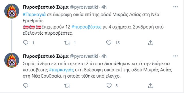 Τραγωδία στη Νέα Ερυθραία, το βράδυ του Σαββάτου, μετά από πυρκαγιά που ξέσπασε σε διώροφη οικία επί της οδού Μικράς Ασίας.