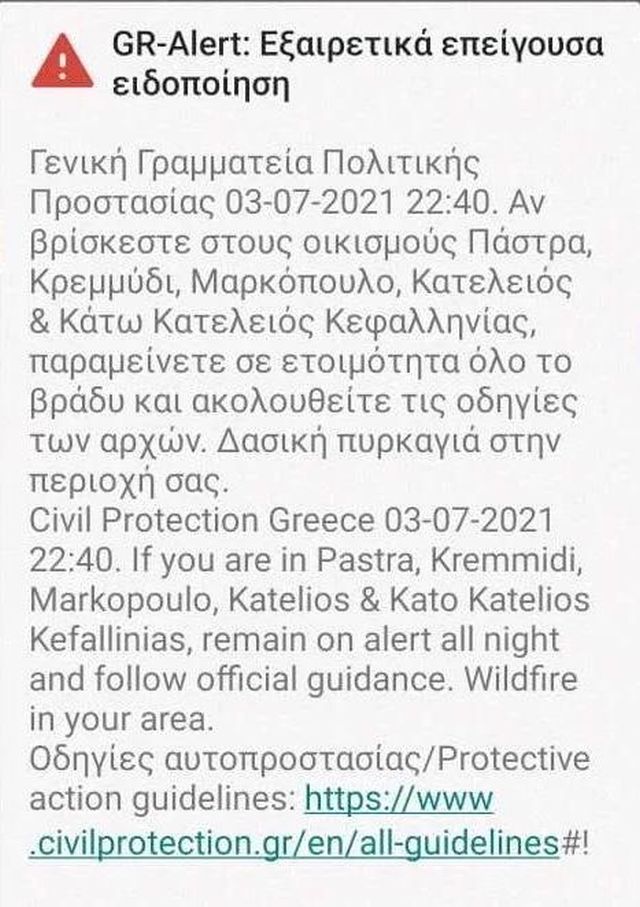 »Δασική πυρκαγιά στην περιοχή σας» αναφέρει, μεταξύ άλλων το μήνυμα του 112.