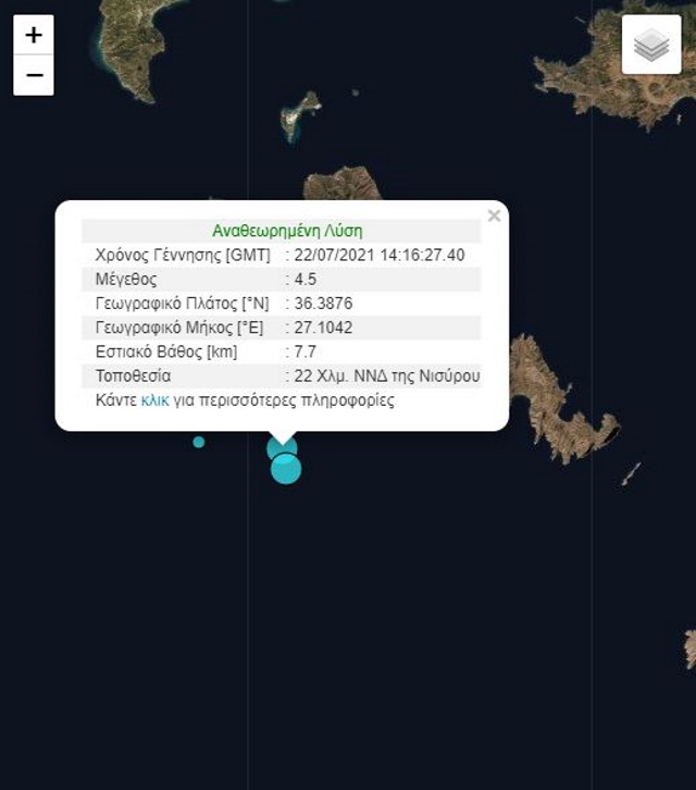 Σεισμική δόνηση έγινε αισθητή στη Νίσυρο, στις 17.16 το απόγευμα της Πέμπτης 22 Ιουλίου.