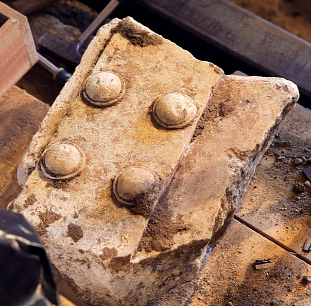 4. Επίσης, υποστηλώθηκε προσωρινά το θραυσμένο υπέρθυρο του τρίτου διαφράγματος, το οποίο θα απομακρυνθεί για να καθαριστεί και να συντηρηθεί.