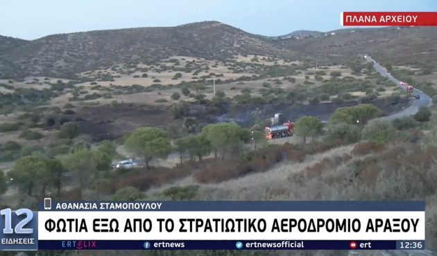 Φωτιά έχει ξεσπάσει σε υπαίθριο χώρο έξω από την αεροπορική βάση του Άραξου, κοντά στην αποθήκη των πυρομαχικών.