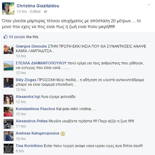“Όταν γίνεσαι μάρτυρας τέτοιου ατυχήματος με απόσταση 20 μέτρων… το μόνο που έχεις να πεις είναι πως η ζωή είναι πολύ μικρή!!!!!”