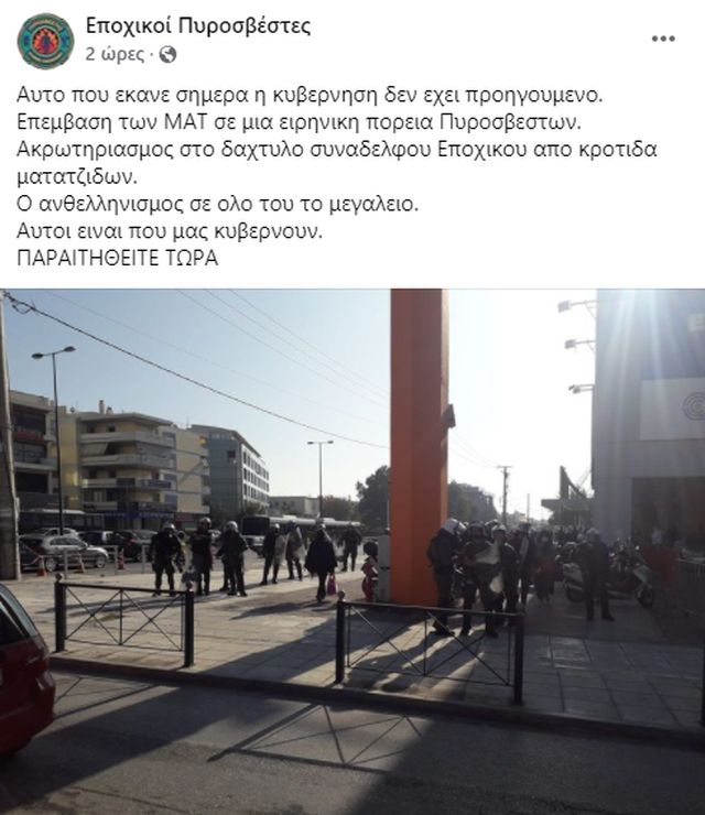 »Επέμβαση των ΜΑΤ σε μια ειρηνική πορεία Πυροσβεστών.