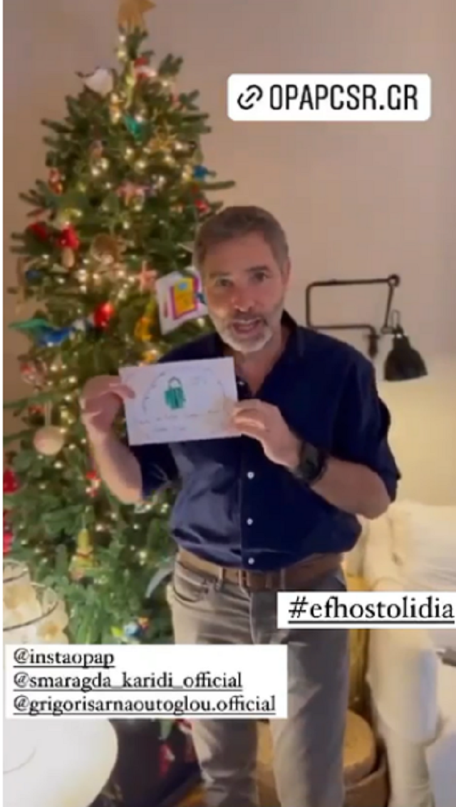 Στη συνέχεια, τη σκυτάλη πήρε ο Γρηγόρης Αρναούτογλου για να κάνει αυτό που όλοι μπορούμε να κάνουμε αυτές τις γιορτές: Να πραγματοποιήσουμε τις ευχές των παιδιών από τους οργανισμούς «Κιβωτός του Κόσμου» και «Το Χαμόγελο του Παιδιού».