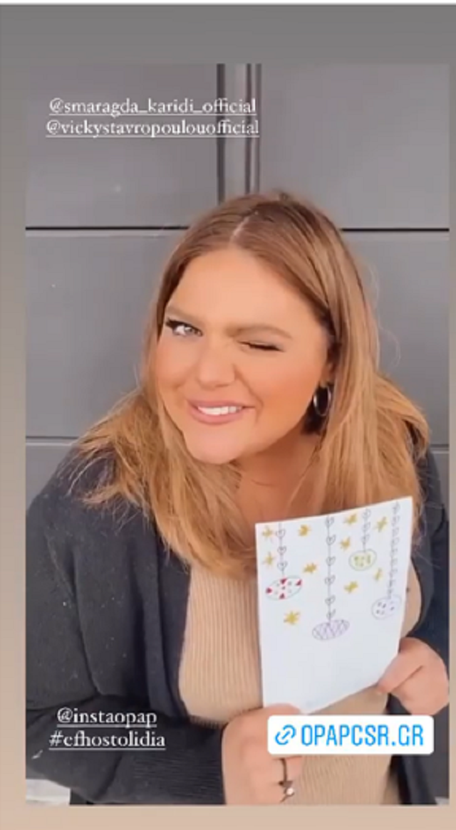 Eκείνη, αφού χάρισε ακόμη ένα Ευχοστολίδι, έδωσε πάσα στη Σμαράγδα Καρύδη, η οποία πρόσθεσε στην αλυσίδα αγάπης για τα παιδιά τον Θοδωρή Αθερίδη.