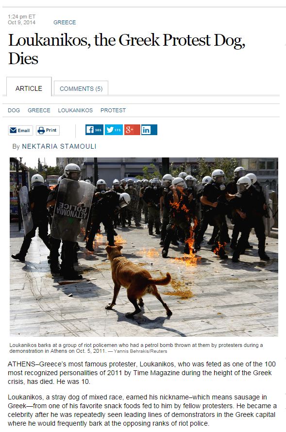 Wall Street Journal, BBC, Hurriyet, Telegraf(Ολλανδία), Guardian είναι μόνο μερικά από τα media όπου ο Λουκάνικος κάνει την τελευταία εμφάνισή του.