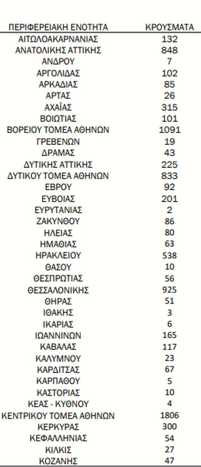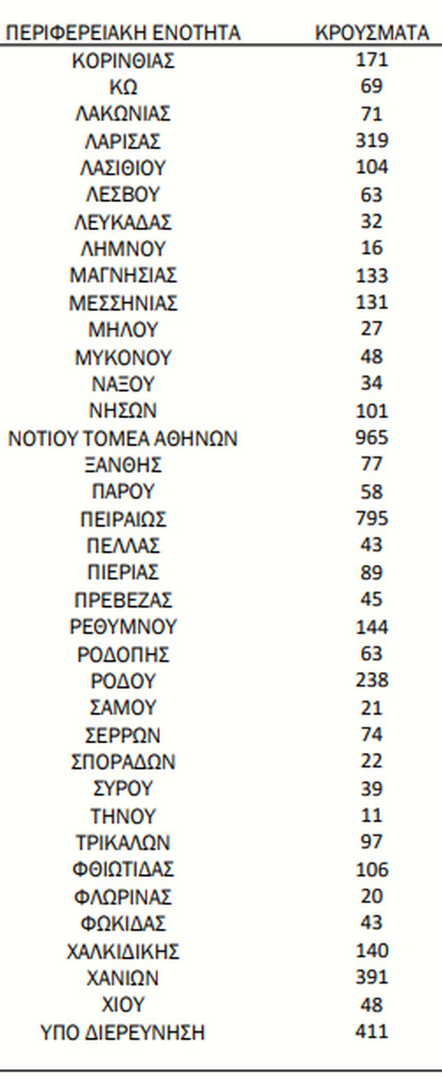 Τα νέα εργαστηριακά επιβεβαιωμένα κρούσματα της νόσου που καταγράφηκαν τις τελευταίες 24 ώρες ήταν 11.629. Ο συνολικός αριθμός των ατόμων που νόσησαν ανέρχεται σε 3.719.839 (ημερήσια μεταβολή +0,3%), εκ των οποίων 48,6% άνδρες.