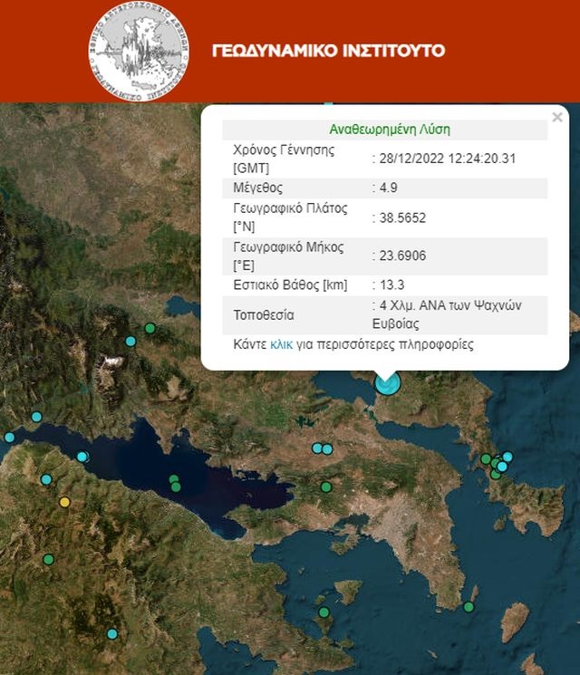 »Το επίκεντρο εντοπίζεται 9 χλμ ανατολικά από τα Ψαχνά Ευβοίας.