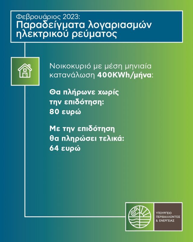 Οι οικιακοί καταναλωτές που «καίνε» μέχρι 500 kWh/μήνα θα επιδοτηθούν κανονικά όπως κάθε μήνα.