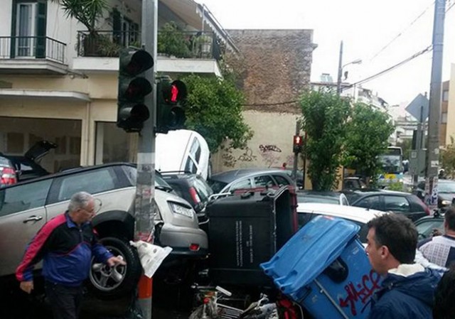 Στην Νίκαια τα οι δρόμοι έγιναν ποτάμια που παρέσυραν τα παρκαρισμένα αυτοκίνητα.