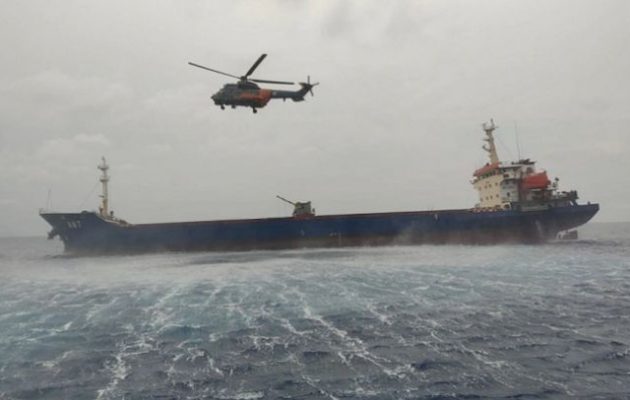 »Επί του πλοίου σημαίας Βανουάτου, καταβιβάσθηκε διασώστης Λ.Σ.-ΕΛ.ΑΚΤ. από το δεύτερο ελικόπτερο SUPER PUMA της Π.Α. που βρέθηκε στο σημείο, προκειμένου να διαπιστώσει την κατάσταση του πληρώματος και την ανάγκη τυχόν παροχής βοήθειας.