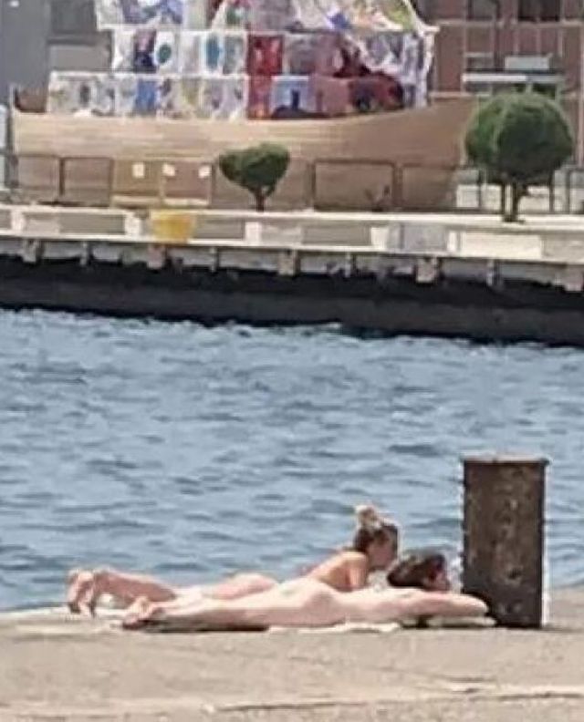 Αυτό, όμως, που έκανε εντύπωση καθώς το σημείο βρίσκεται δίπλα στον δρόμο από τον οποίο περνούν καθημερινά εκατοντάδες άνθρωποι, είναι οτι οι δύο γυναίκες αποφάσισαν να κάνουν γυμνισμό.