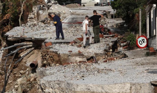 Στην Άλλη Μεριά ο κεντρικός δρόμος που οδηγεί στα παραπάνω χωριά υπέστη σοβαρές καταστροφές, με την άσφαλτο να έχει καταρρεύσει μέσα στο ρέμα.