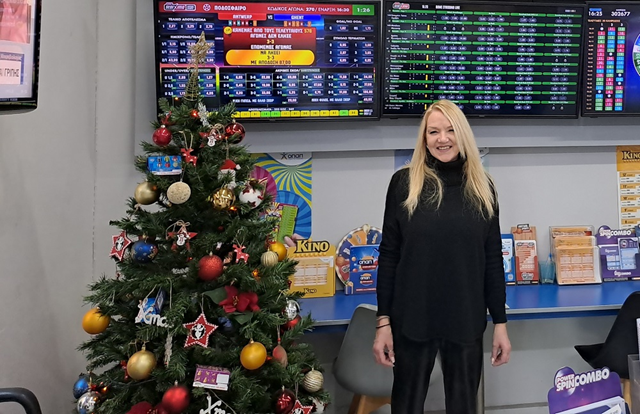 »Ευχόμαστε υγεία και καλές γιορτές, να τα χαρεί όπως εκείνος επιθυμεί», αναφέρει η κα Λέσλι Ντίκι, υπάλληλος στο τυχερό κατάστημα ΟΠΑΠ που βρίσκεται στην οδό Μαρασλή 6 στη Θεσσαλονίκη.