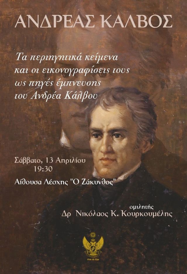 Στη Ζάκυνθο, το Σάββατο 13 Απριλίου το Φιλοσοφικό Εργαστήριο «Γεώργιος Μοθωναίος, υπ’ αρ. 56» του Αρχαίου και Αποδεδεγμένου Σκωτικού Τύπου (ΑΑΣΤ), διοργάνωσε στην ιστορική «Λέσχη Ο Ζάκυνθος, 1839», μία εξαιρετική εκδήλωση για να τιμήσει την επέτειο των 200 χρόνων από την έκδοση στη Γενεύη της πρώτης συλλογής των Ωδών του Ανδρέα Κάλβου: «Η Λύρα, 1824».