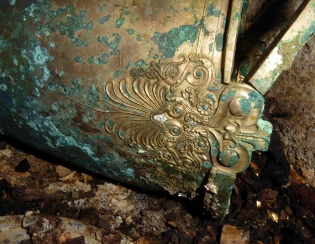 Και μια λεπτομέρεια από τη διακόσμηση του αγγείου για να χαρείτε το εξαιρετικό επίπεδο της μακεδονικής μεταλλουργίας…