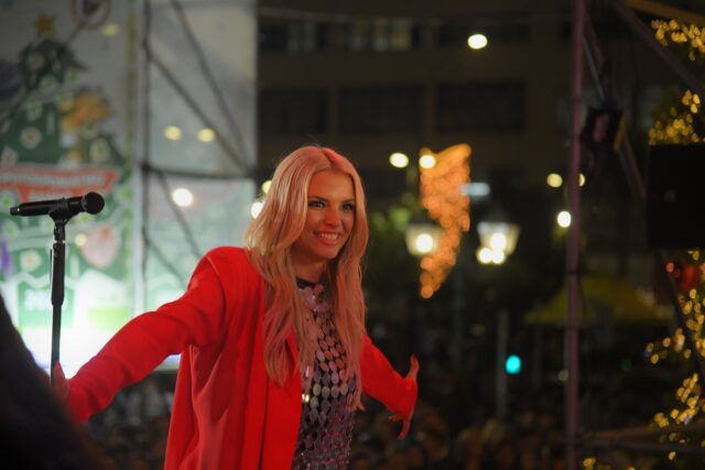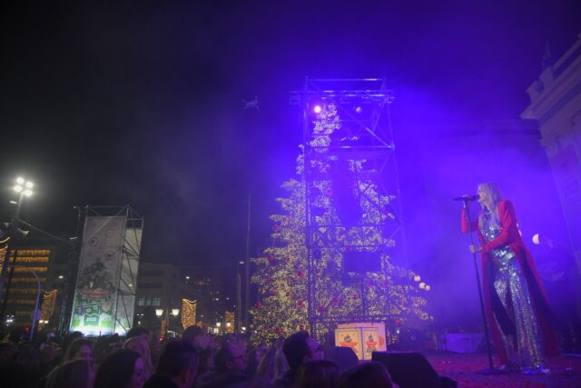 Η εορταστική φιέστα είχε τη λάμψη από τα 100.000 λαμπιόνια που άναψαν στο έλατο, πολλή μουσική από τον «104,6 My Radio» και την Κατερίνα Λιόλιου live, σε μια συναυλία powered by Πρωτοχρονιάτικο Λαχείο.