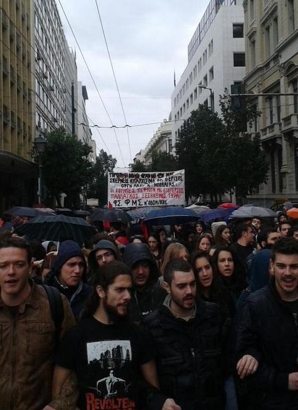 Μέσα σε ηλεκτρισμένη ατμόσφαιρα που έχει δημιουργεί από τα χθεσινά βίαια επεισόδια στο Πολυτεχνείο, οι φοιτητές διαδηλώνουν αυτή την ώρα στο κέντρο της Αθήνας.