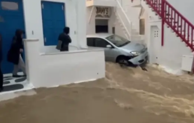 «Απαγορεύεται η μετακίνηση με οχήματα στο οδικό δίκτυο της Μυκόνου, λόγω εκδήλωσης έντονων καιρικών φαινομένων, μέχρι το πέρας των φαινομένων.