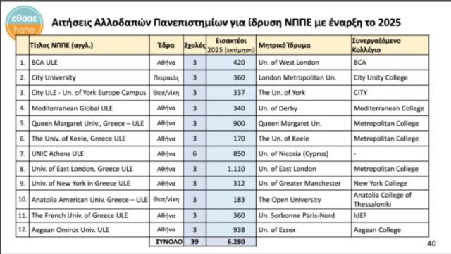 Σύμφωνα με τις αιτήσεις των αλλοδαπών πανεπιστημίων για ίδρυση ΝΠΠΕ το Σεπτέμβριο του 2025, ισχύουν τα εξής: