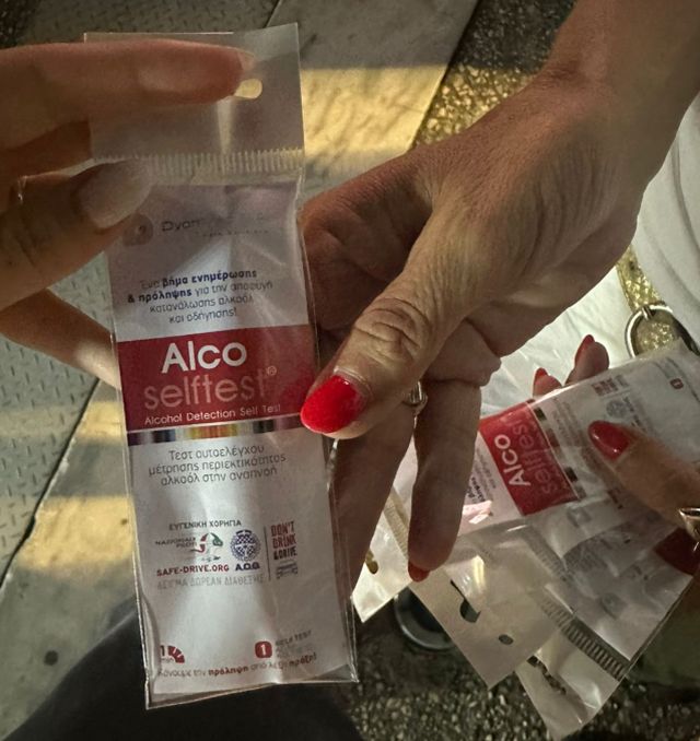 Κατά τη διάρκεια της εκδήλωσης έγινε δωρεάν διάθεση του Alco Selftest®, του πρώτου self-test ανίχνευσης αλκοόλ στον εκπνεόμενο αέρα, το οποίο δίνει αξιόπιστο αποτέλεσμα σε μόλις δύο λεπτά.