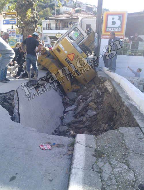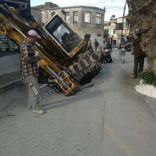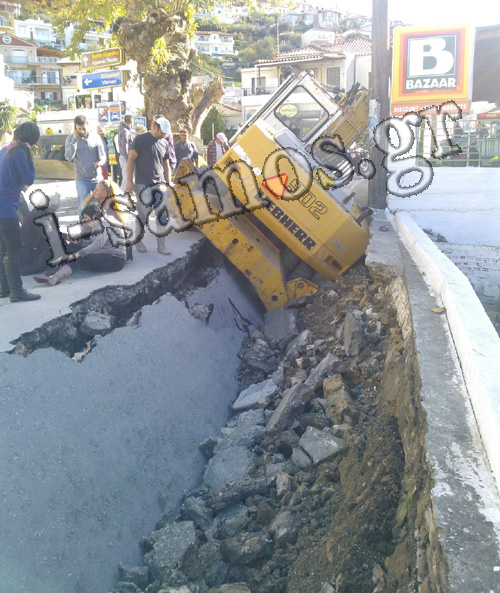 Ένας βαρύς εκσκαφέας που βρισκόταν εν κινήσει (σε αργή ταχύτητα) και μια γυναίκα που ακολουθούσε πεζή από πίσω, κυριολεκτικά άνοιξε ο δρόμος και “ρούφηξε”, και τους δυο, σε βάθος 2 μέτρων!