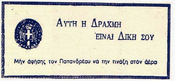 Και όπως και τώρα, η τότε ΕΡΕ στηρίζει την προεκλογική της εκστρατεία σε μια συστηματική κινδυνολογία για την οικονομία και την νομισματική σταθερότητα. Η ΕΡΕ τυπώνει σε 3 εκατομμύρια αντίτυπα αφίσα με την απεικόνιση της δραχμής και δίπλα η φράση «Αυτή η δραχμή είναι δική σου. Μην αφήσης τον Παπανδρέου να την τινάξη στον αέρα» μεταφέρει ένα κλίμα κινδυνολογίας στον ψηφοφόρο.