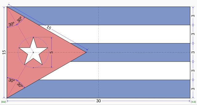 Οι τρεις γαλάζιες λωρίδες αντιπροσωπεύουν τις αποικιακές στρατιωτικές διαιρέσεις της Κούβας, χωρισμένες από λευκές λωρίδες που συμβολίζουν την αγνότητα και τη δικαιοσύνη.