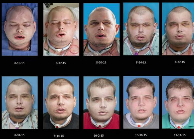Έτσι η μόνη λύση ήταν η μεταμόσχευση προσώπου. Χρειάστηκε ουσιαστικά ένας χρόνος μέχρι να βρεθεί ο κατάλληλος δότης που θα ήταν συμβατός και να μειωθεί ο κίνδυνος να απορριφθεί από το σώμα του πυροσβέστη ο νέος ιστός.