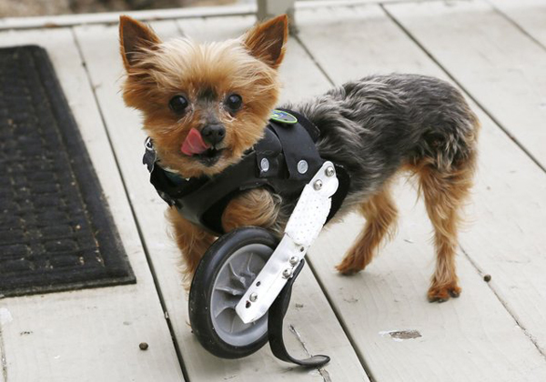 10) Αυτό το Γιορκσάιρ Τεριέ ονομάζεται Χόουπ, που σημαίνει Ελπίδα, και φορά ένα γιλέκο με τροχό.