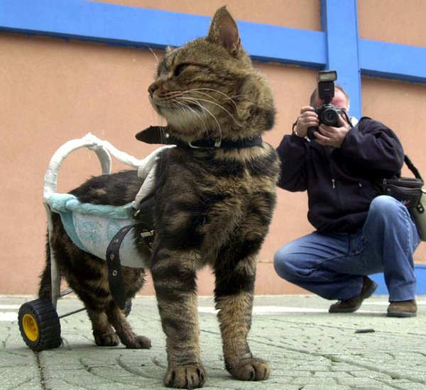 5) Ο Όσκαρ είχε τα πίσω πόδια του, μέχρι που του τα έκοψε μια θεριζοαλωνιστική μηχανή. Ο 2 ετών γάτος, δεν χρειάστηκε να χρησιμοποιήσει αναπηρική καρέκλα για να περπατήσει, αφού του έχουν βάλει προσθετικά άκρα.