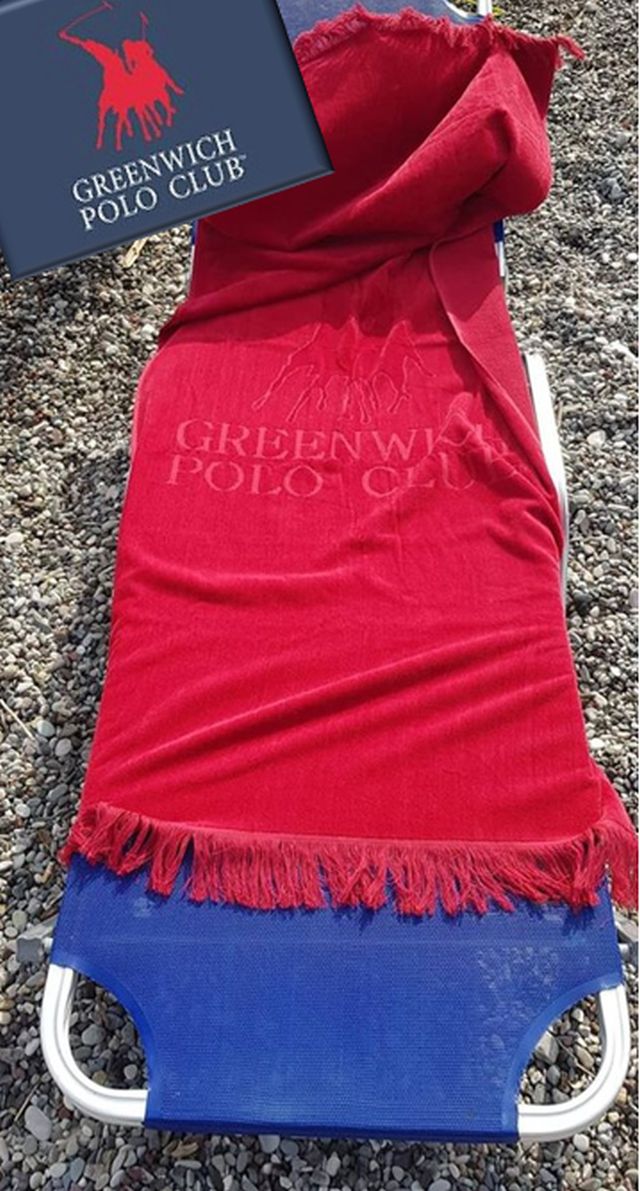 Η άλλη επιλογή είναι η πετσέτα παρεό της Greenwich Polo Club σε ένα υπέροχο μπρορντοκόκκινο χρώμα και διακριτικό ανάγλυφο λογότυπο.