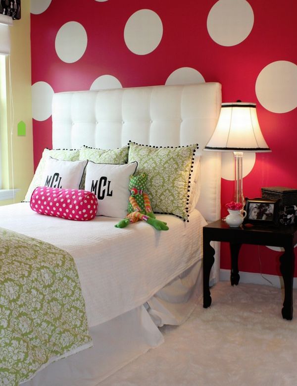 * Για ένα παιχνιδιάρικο κοριτσίστικο υπνοδωμάτιο αγοράστε μία κόκκινη ταπετσαρία με μεγάλα κόκκινα πουά μοτίβα