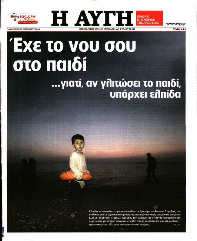 «Η ΑΥΓΗ έχει επιλέξει ένα πρωτοσέλιδο για να ξεφύγει από τις ευθύνες της και από τα πραγματικά προβλήματα» σχολίασε ο κ. Οικονόμου προσθέτοντας «συγκινητικό, δεν λέω αλλά και έχει και άλλα θέματα η επικαιρότητα. Το προσφυγικό ήταν και χθες εδώ, δηλαδή πρέπει να συγκινείσαι κάθε μέρα»;, αναφέρεται σε άρθρο με τίτλο «Όταν η δημοσιογραφία γίνεται κυνισμός δεν βλέπει τα νεκρά παιδιά στο Αιγαίο ως πραγματικό πρόβλημα»