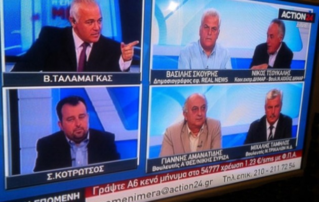 Βασίλης Ταλαμάγκας και Σεραφείμ Κοτρώτσος, στην πρώτη γραμμή της εκλογικής, τηλεοπτικής βραδιάς του Action24 για τις δημοτικές και περιφερειακές εκλογές.