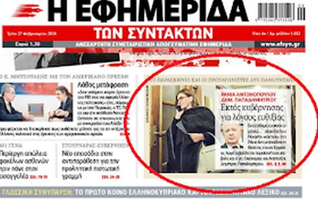 Τώρα πάνω στην αντιπολιτευτική σπουδή («γιατί δεν παραιτείται και ο Παπαδημητρίου; – Mετά την Αντωνοπούλου οφείλει να αποχωρήσει και ο σύζυγός της») βγήκαν τα δύο πρωτοσέλιδα και εξέθεσαν το διευθυντικό επιτελείο με την επιλογή του θέματος που είχε ήδη ξεπεραστεί από τα χαράματα της Τρίτης…