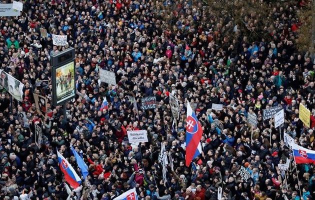 Δεκάδες χιλιάδες Σλοβάκοι διαδήλωσαν την Κυριακή ζητώντας την παραίτηση του επικεφαλής της αστυνομίας με φόντο τη δολοφονία ενός δημοσιογράφου ο οποίος ερευνούσε τα φαινόμενα διαφθοράς στη χώρα.