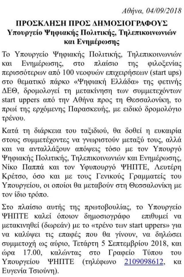 Να προσθέσουμε εδώ ότι το Υπουργείο είχε απευθύνει ανοιχτή πρόσκληση σε όποιον δημοσιογράφο το επιθυμούσε να συνταξιδέψει δωρεάν με το εν λόγω τρένο για να καλύψει το ρεπορτάζ.