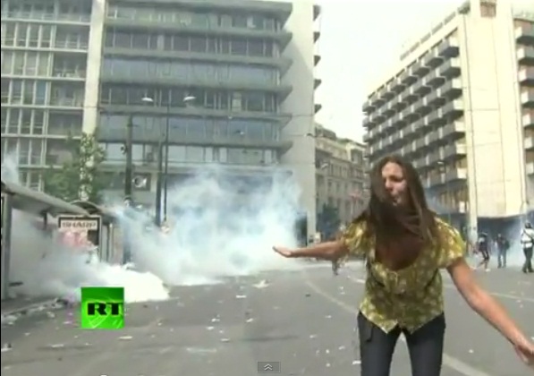 Η Σάρα Φιρθ είχε βρεθεί στην Αθήνα, στις μεγάλες διαδηλώσεις επί πρωθυπουργίας Γιώργου Παπανδρέου κι όπως βλέπετε και στην εικόνα, είχε “φάει” κανονικά τα δακρυγόνα της στην Πλατεία Συντάγματος.