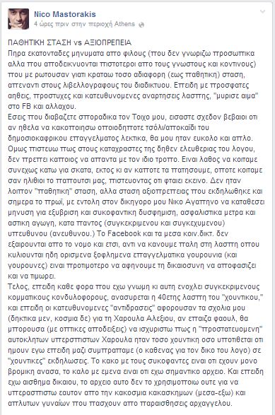 Διαβάστε όλη την ανάρτηση του Νίκου Μαστοράκη: