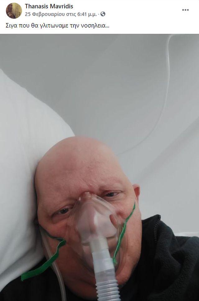 Ο ίδιος στις 25 Φεβρουαρίου είχε κάνει ανάρτηση μέσα από το νοσοκομείο με μάσκα οξυγόνου και σχόλιο: «Σιγά που θα γλιτώναμε τη νοσηλεία».