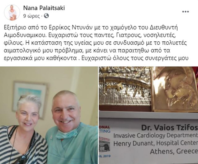 »Ευχαριστώ τους παντες, Γιατρους, νοσηλευτές, φίλους. Η κατάσταση της υγείας μου σε συνδυασμό με το πολυετές αιματολογικό μου πρόβλημα, με κάνει να παραιτηθω από τα εργασιακά μου καθήκοντα.
