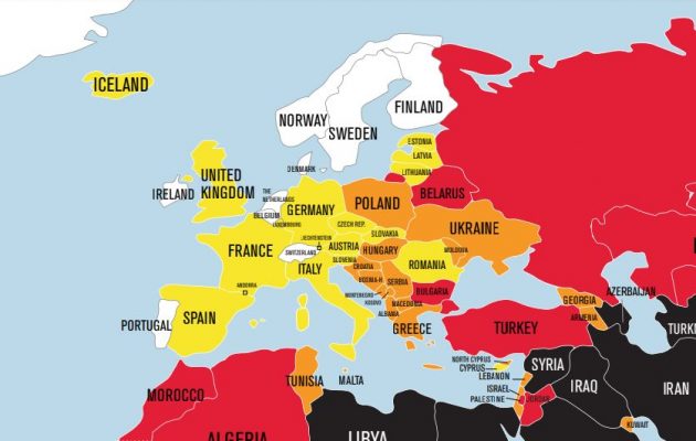 Η Ελλάδα είναι η μοναδική χώρα της παλιάς Ευρωπαϊκής Ένωσης που είναι απόχρωσης «πορτοκαλί» που σημαίνει «προβληματική κατάσταση».