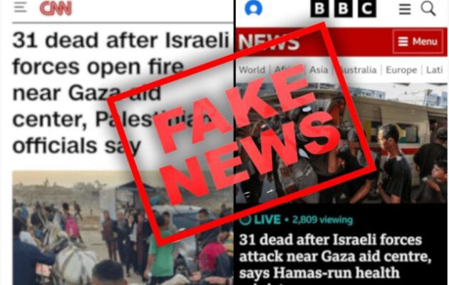 Την Κυριακή, τα πρωτοσέλιδα σε CNN, BBC, Sky News και άλλα μεγάλα Μέσα φώναζαν: «Τουλάχιστον 31 Παλαιστίνιοι νεκροί από πυρά ισραηλινών δυνάμεων κοντά σε κέντρο διανομής βοήθειας στη Γάζα, σύμφωνα με Παλαιστίνιους αξιωματούχους».