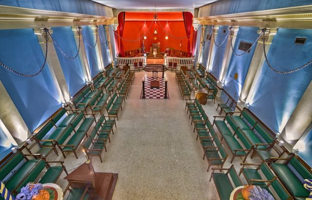 Αίθουσα στοάς στο Τεκτονικό Μέγαρο της Μεγάλης Στοάς της Ελλάδος στην Αθήνα, επί της Αχαρνών. (Φωτογραφία: Nikos Mandarakas)