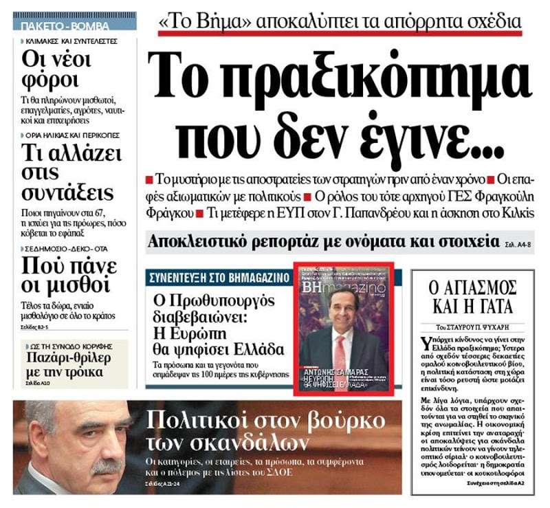 Η εφημερίδα Το ΒΗΜΑ όταν τρομοκρατούσε τον ελληνικό λαό με φανταστικά πραξικοπήματα! Και όμως, παρά αυτές τις αναπόδεικτες ψευτιές θεωρείται από κάποιους “σοβαρή εφημερίδα”.